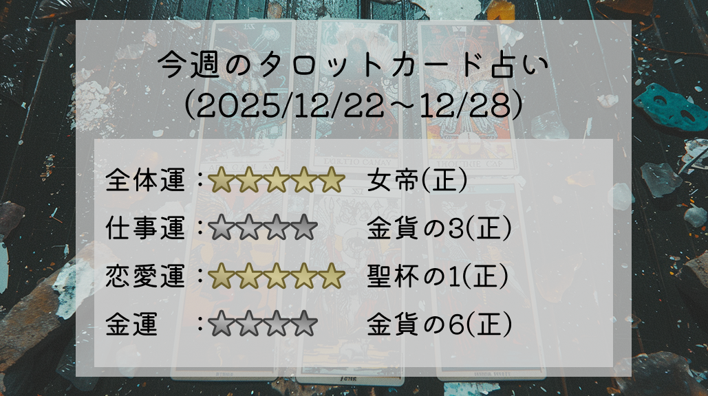 さて、今週(12/22~12/28)のあなたの運勢。